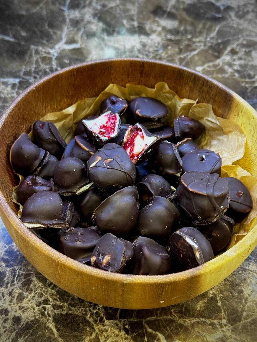 💔 🔷Ингредиенты: ▪️Малина ▪️Белый шоколад ▪️Темный шоколад 🔷Способ приготовления: 🔹1)Немного белого шоколада растапливаем (я выложила в кондитерский мешок, и положила мешок в стакан и залила кипятком). При помощи кондитерского мешка, выкладываем шоколад внутрь каждой ягоды. Отправляем в морозилку на 10 -15 минут. 🔹2)Топим остальную часть белого шоколада. Окунаем малину в шоколад и затем опять в морозилку на 10-15 минут. Топим темный шоколад, окунаем каждую ягоду, отправляем в морозилку на 30 минут. ⠀🔹Приятного аппетита