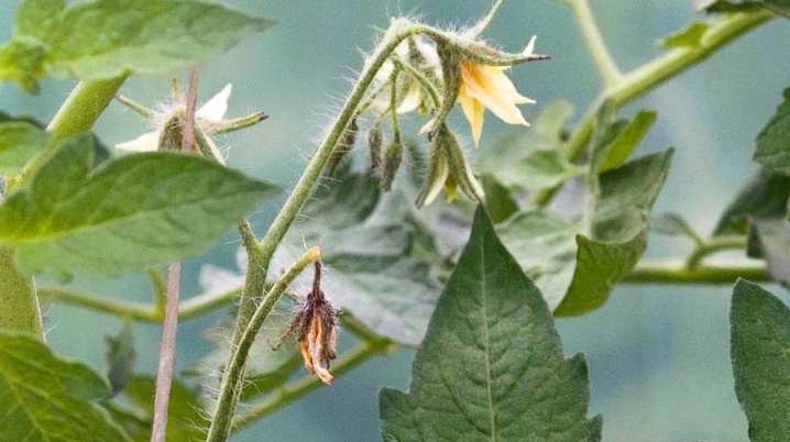 Соседка по даче в июле пожаловалась: теплица мощная, кусты высокие, а цветы сыплются каждый день, листья скручены.