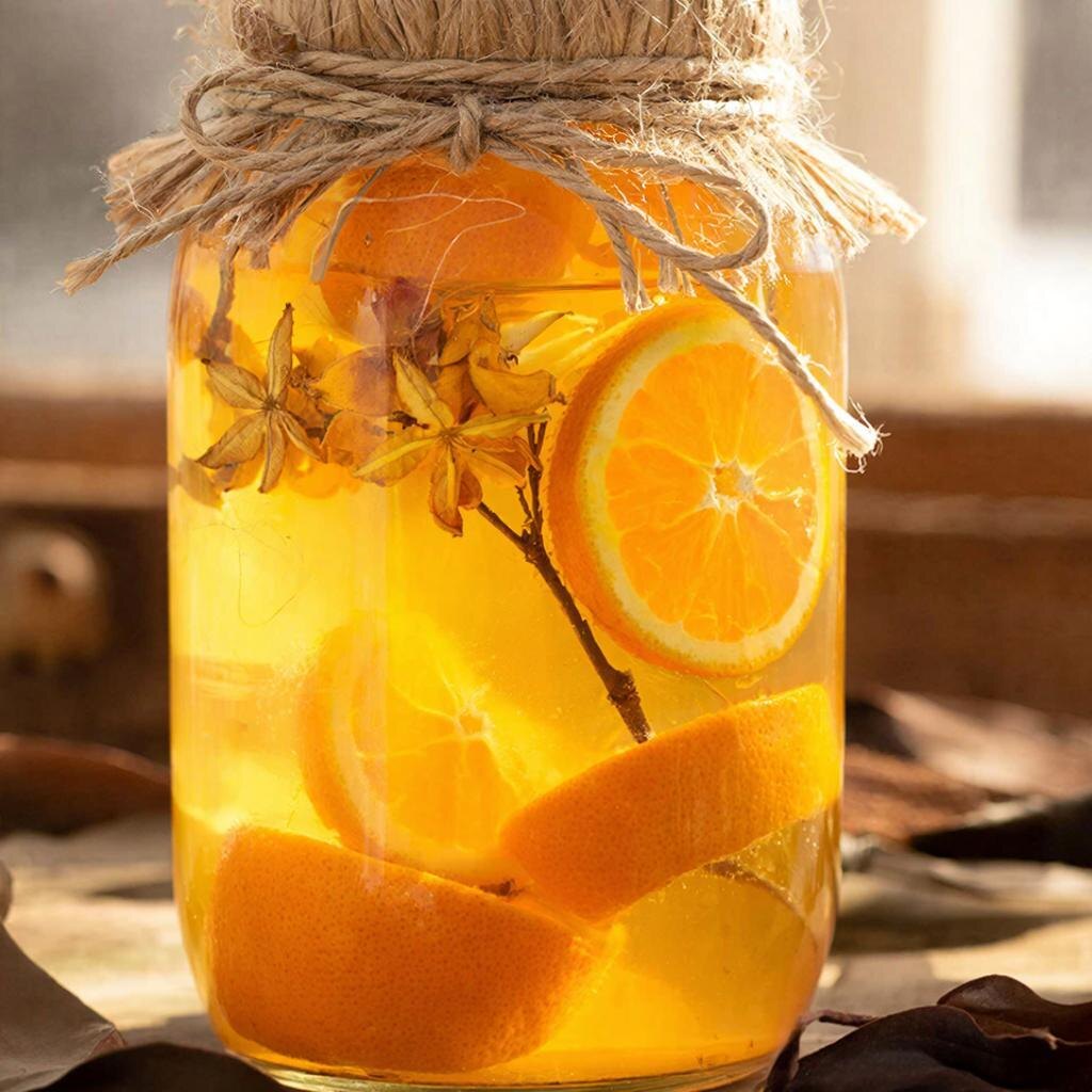 Укладываем сухофрукты в трёхлитровую банку — они теперь главные актёры этого шоу. Добавляем декстрозу (наш секретный сглаживатель острых углов) и заливаем спиртовой основой. Теперь всё это должно подружиться. Шаг 3. Мандарин н