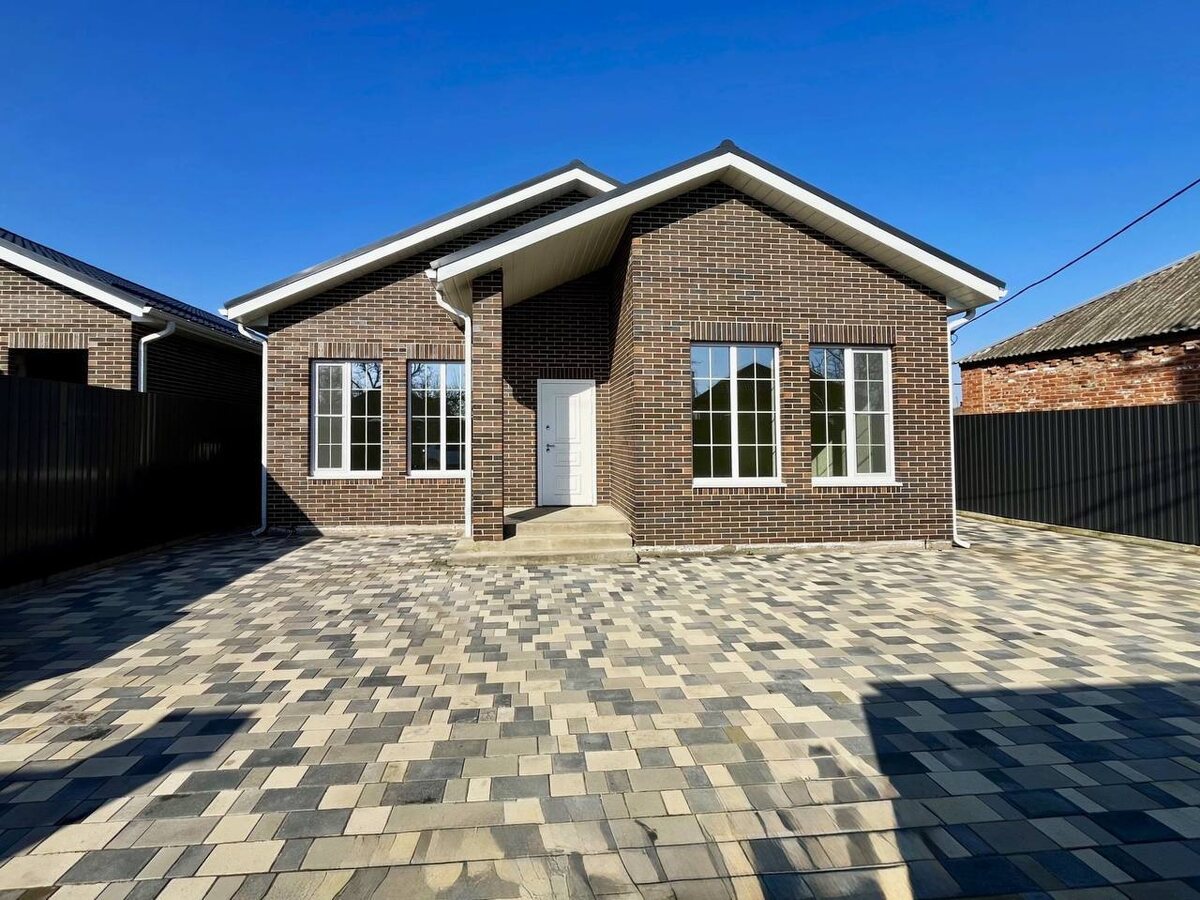 ! 🏡Новый коттедж с четырьмя спальнями, ремонтом и всеми коммуникациями в центре поселка Яблоновский. 📍Дом расположен в хорошей локации: в пешей доступности — все социально важные объекты: школа, детский сад, супермаркеты и магазины, кафе и пекарни. ❗️Подъездные пути — асфальтированная дорога. 🌳Одноэтажный коттедж расположен на участке земли 4 сотки, участок огороже по периметру забором, с фасадной стороны — кирпичные колонны, евроштакетник, автоматические ворота, калитка. ◾️Двор благоустроен, выложен плиткой. 🏡Дом общей площадью 122 кв.м спланирован в крыльцо, прихожую, четыре спальни, одна из которых — мастер-спальня со своим санузлом, гостевой санузел, котельную-кладовую с люком в подвальное помещение, кухню-гостиную с выходом на задний двор. ◾️В доме выполнен современный ремонт «под ключ». ◾️На полу — ламинат, на стенах — обои, натяжные потолки, в зонах теплого пола — керамическая плитка, разводка сантехнического, электрического и отопительного оборудования, радиаторы отопле