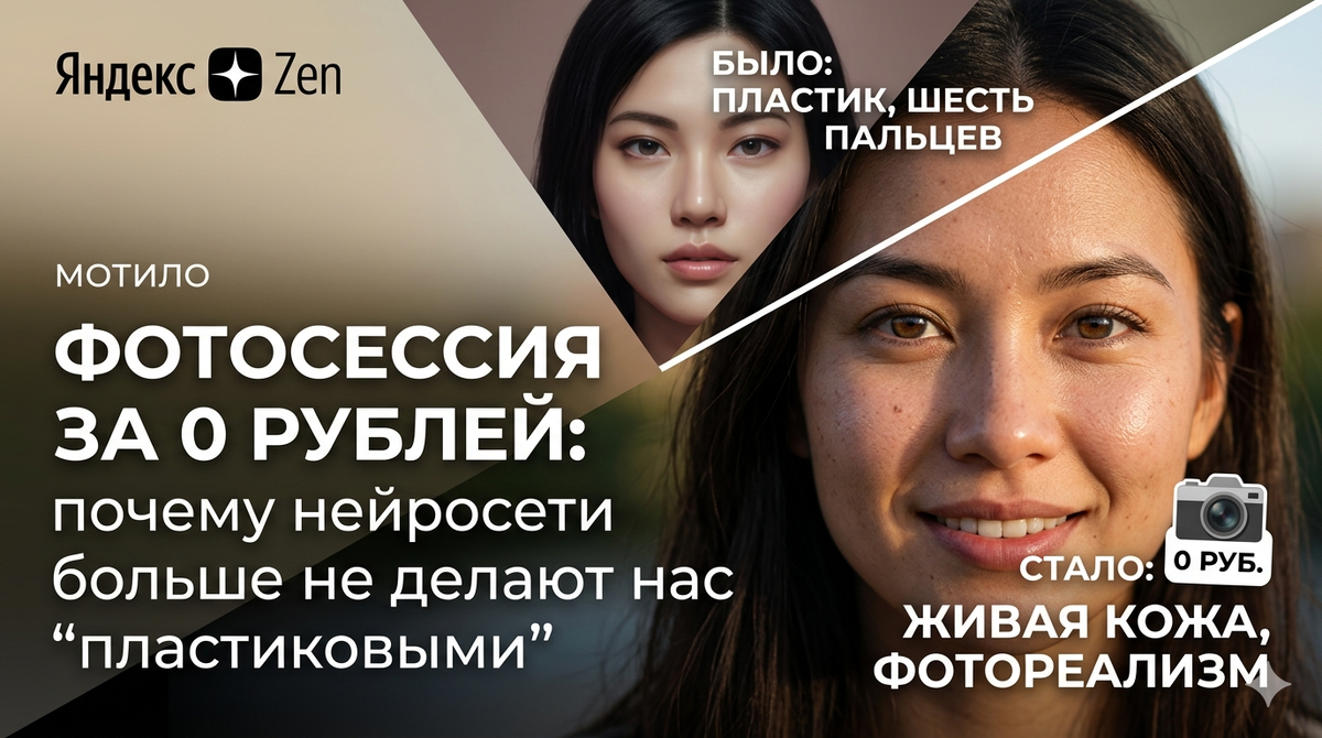 Фотосессия за 0 рублей: почему нейросети больше не делают нас «пластиковыми» Помните первые генерации нейросетей? Лица, будто натертые воском, по шесть пальцев на руках и взгляд, смотрящий куда-то в пустоту. Это было забавно, но абсолютно неприменимо для серьезного контента. Эксперты кривились, а аудитория сразу считывала фальшь. Но, кажется, мы официально перешли черту. Эффект «зловещей долины» побежден