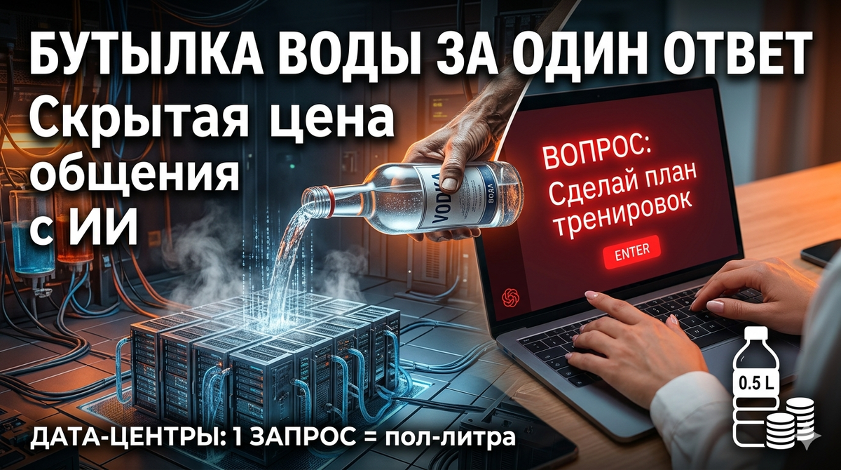 Задумывались ли вы когда-нибудь, почему серверы называют «фермами»? Им нужно огромное количество энергии и... охлаждения. Недавние исследования показали: один средний запрос в чат-бот тратит в 10 раз больше электроэнергии, чем простой поиск в Google. Но самое впечатляющее — это вода. Чтобы нейросеть выдала вам текст из 100 слов, дата-центру требуется почти пол-литра воды для охлаждения систем. Представьте: каждый раз, когда вы просите ИИ составить план тренировок или написать поздравление тете, вы буквально выливаете бутылку минералки на пол. А теперь умножьте это на миллионы пользователей, которые общаются с ИИ ежедневно.