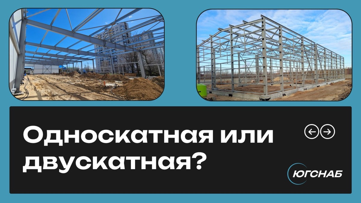 🏗 Разберемся, какой конструктив выбрать для здания. 1. Односкатная кровля: Простота и экономия Идеальный выбор для небольших и средних объектов (шириной до 12-15 метров). ➕ Плюсы: - Бюджет: Минимум фасонных элементов (нет конька) и упрощенная водосточная система (только с одной стороны). - Монтаж: Высокая скорость сборки каркаса и укладки панелей/профлиста. - Энергоэффективность: Меньше лишнего подкровельного объема — меньше затрат на отопление. ❌ Нюансы: При большой ширине пролета одна из стен становится слишком высокой (для соблюдения уклона), что увеличивает парусность здания и расход материалов на стены. 2. Двускатная кровля: Надежность на больших пролетах Золотой стандарт для широкопролетных зданий и логистических центров. ➕ Плюсы: - Распределение нагрузок: Симметричная конструкция лучше справляется со снеговыми и ветровыми нагрузками. - Габариты: Позволяет перекрывать здания практически любой ширины без избыточного роста высоты стен. - Естественный свет: Проще интегриро