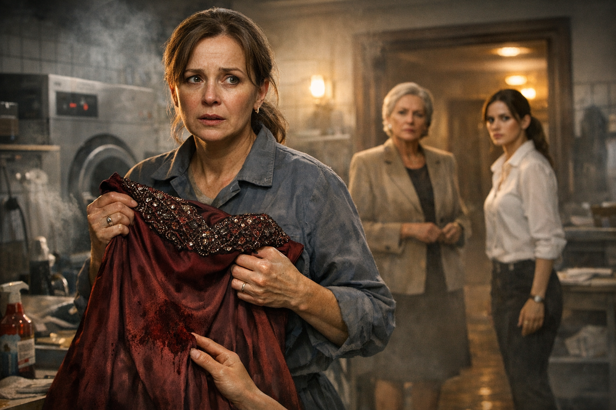 Марина Сергеевна сунула ей платье так резко, что плечики стукнули Вере по ключице. Платье было тяжёлое, вечернее, цвета тёмного вина, с узкой талией и расшитым лифом. На подоле, почти у самого шва, расползалось бурое пятно, уже подсохшее по краям.