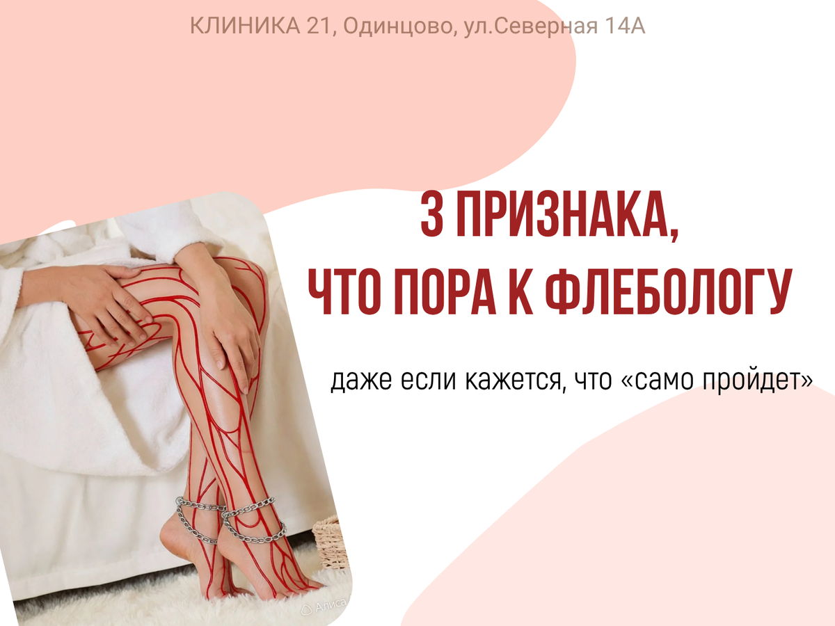 🦵 Многие привыкли списывать усталость в ногах на долгий день, отеки — на жару или соленую пищу, а сосудистые звездочки — на «что-то косметическое». ⚡Но флебологи говорят иначе: это не норма. И часто — первые звонки о том, что венам нужна помощь. 🧐Разберем три главных сигнала, с которыми стоит записаться к врачу-флебологу уже сейчас (тем более что в нашей клинике действует скидка 20% на прием нового специалиста). 📍 1️⃣ Тяжесть и усталость в ногах к вечеру «К вечеру ноги гудят», «как будто свинцом налиты» — знакомая фраза? ✅ Это не усталость, это венозный застой. Когда венозные клапаны работают плохо, кровь задерживается в нижних конечностях, создавая ощущение тяжести, распирания и усталости. Отдых с поднятыми ногами помогает, но временно. 🔴 Пора к врачу, если: - ноги «устают» быстрее, чем раньше; - тяжесть появляется даже после небольшой нагрузки; - вы замечаете, что стали чаще хотеть прилечь и поднять ноги. 📍 2️⃣ Отеки на ногах (особенно к вечеру) Отек — это избыток жидкости в тк