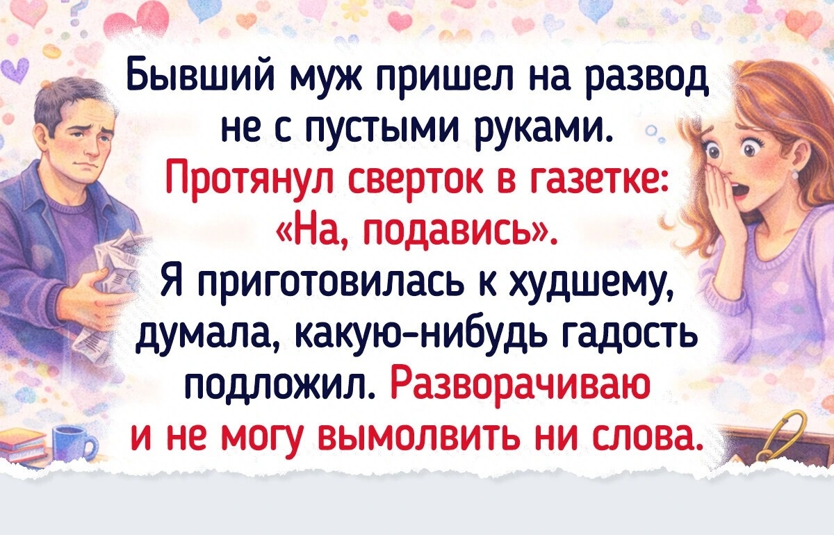 Бывший муж пришел на развод не с пустыми руками. Протянул сверток в газетке: «На, подавись». Я приготовилась к худшему, думала, какую-нибудь гадость подложил. Разворачиваю и не могу вымолвить ни слова. Там лежала моя маленькая музыкальная шкатулка, вернее, точно такая же, как та, что была у меня в детстве, под ее мелодию я засыпала. Эта новая шкатулка играла ту же песенку! Выяснилось, что муж полгода искал точно такую же на барахолках, чтобы извиниться за все. Самый лучший подарок за все годы брака, если честно. Развестись мы все равно развелись, но смогли наладить спокойное общение ради наших детей. © ADME