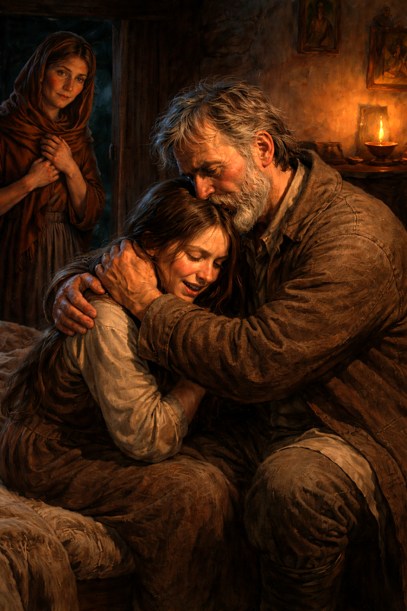 Михайло обнял дочь, прижал обеими руками, гладил по голове, по плечам, по спине.