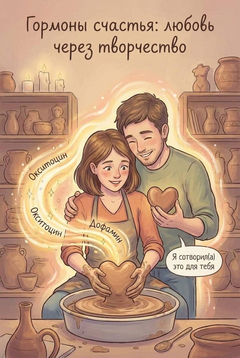 ) 🏺 Странный заголовок, правда? Но это чистая физиология. Вы замечали, что в периоды творческого подъёма вы больше любите? Тянет обнимать, писать стихи, готовить ужин при свечах? И наоборот — когда нет творчества, любовь становится пресной, бытовой, «дежурной». Связь здесь прямая Творчество «раскачивает» вашу сенсорную чувствительность. Вы начинаете тоньше чувствовать — не только бумагу и краски, но и прикосновения, интонации, настроение партнёра. Психологи называют это повышением уровня эмпатии через творческую активность . Когда вы в творческом потоке, ваша нервная система приходит в состояние баланса. Вы не в стрессе («бей или беги») и не в апатии («замри»). Вы в состоянии безопасности и открытости. А это — единственное состояние, в котором возможна настоящая любовь . «Самоактуализация — это не просто творчество, это способность к глубоким межличностным отношениям» , — подчёркивал Маслоу в своих работах о самоактуализирующихся людях . Мамардашвили сказал бы так: «Любовь — эт