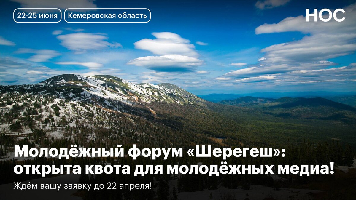 ! ✈️ Новый день — новая квота для молодёжных медиа на яркие события. И в этот раз ждём вас на форуме «Шерегеш» — мероприятии для 300 разработчиков, дизайнеров, медийщиков и стратегов, которым предстоит погрузиться в создание продукта в сфере туризма. Кстати, участники прошлых лет уже создавали реальные продукты: цифровой сервис «Родная Сибирь», фотобанк туристических мест региона и медиапроекты по кибербезопасности 📍 Кемеровская область ⏰ 22-25 июня А вы готовы стать теми, кто будет освещать это событие? Уже слышим ваше «да» До 22 апреля проходите регистрацию на трек «Контент и коммуникации» и пишите в бот НОС ФИО, название учебного учреждения и прикрепляйте ссылку на медиапортфолио 📱 ➡️ НОС: Телеграм | ВКонтакте | МАХ