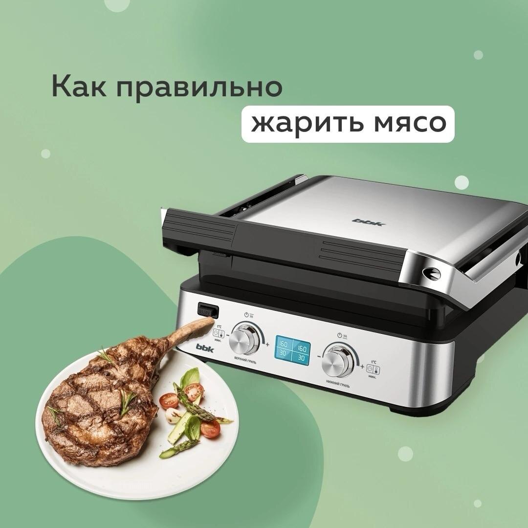1. Выкладывайте мясо на раскаленную поверхность, тогда его корочка будет хрустящей. 2. Используйте рафинированное растительное масло. А чтобы размягчить корочку стейка и придать ему нежный сливочный вкус, незадолго до готовности положите на него маленький кусочек сливочного масла 🧈 3. Солите мясо в конце приготовления 🧂 4. Для хрустящей корочки можно использовать сахаросодержащие соусы: терияки, барбекю. 5. Постарайтесь сразу добиться хрустящей корочки. Она удержит мясной сок в куске и сделает его сочнее. 6. Для «мяса с кровью» поддерживайте максимально высокую температуру, время жарки – одна минута на каждый сантиметр толщины. Для средней прожарки немного уменьшите температуру после того, как появится корочка. 7. Выбирайте качественную технику для приготовления мяса. Большой выбор электрических плит, мини-печей и электрогрилей вы можете найти на нашем официальном сайте bbk.ru!