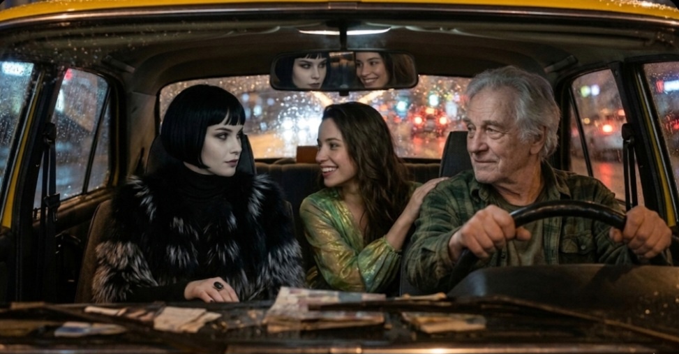 Таксист моргнул. Яркая прыснула от смеха. Строгая тоже едва заметно улыбнулась — и это только усилило тревогу водителя.