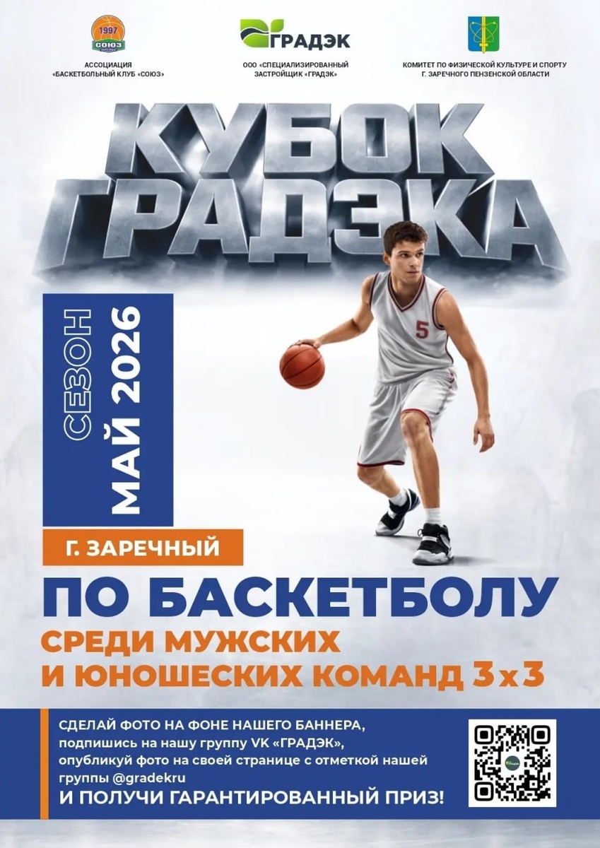 ! 🏀 Друзья, готовьте кроссовки и заряжайтесь азартом — СЗ ГРАДЭК совместно с БК Союз запускают грандиозное событие для юных баскетболистов! Приглашаем всех желающих на турнир «Кубок ГРАДЭКА по баскетболу 3×3»! Неважно, опытный ты игрок или только делаешь первые шаги в баскетболе — мы рады каждому! Окунись в атмосферу настоящего спортивного праздника, почувствуй драйв игры и заведи новых друзей! 🗓 Когда: 2 мая. 📍 Где: г. Заречный в центральном Парке 👥 Возрастные категории: 2016 г. р. и младше; 2013 г. р. и младше; 2010 г. р. и старше. 🔥 А ещё мы разыгрываем дополнительные крутые призы от СЗ ГРАДЭК и БК Союз! 🔥 🏆 Призы для победителей розыгрыша: 1️⃣ 1‑е место — баскетбольный мяч + сладкий приз 2️⃣ 2‑е место — именная кофта ГРАДЭК + сладкий приз 3️⃣ 3‑е место — футболка ГРАДЭК + сладкий приз 4️⃣ 4‑е место — кепка ГРАДЭК + сладкий приз 5️⃣ 5‑е место — сладкие призы Как участвовать в розыгрыше? Просто выполни 3 лёгких шага: Подпишись на наши 3 группы в ВК ( vk.com/gradekru , v