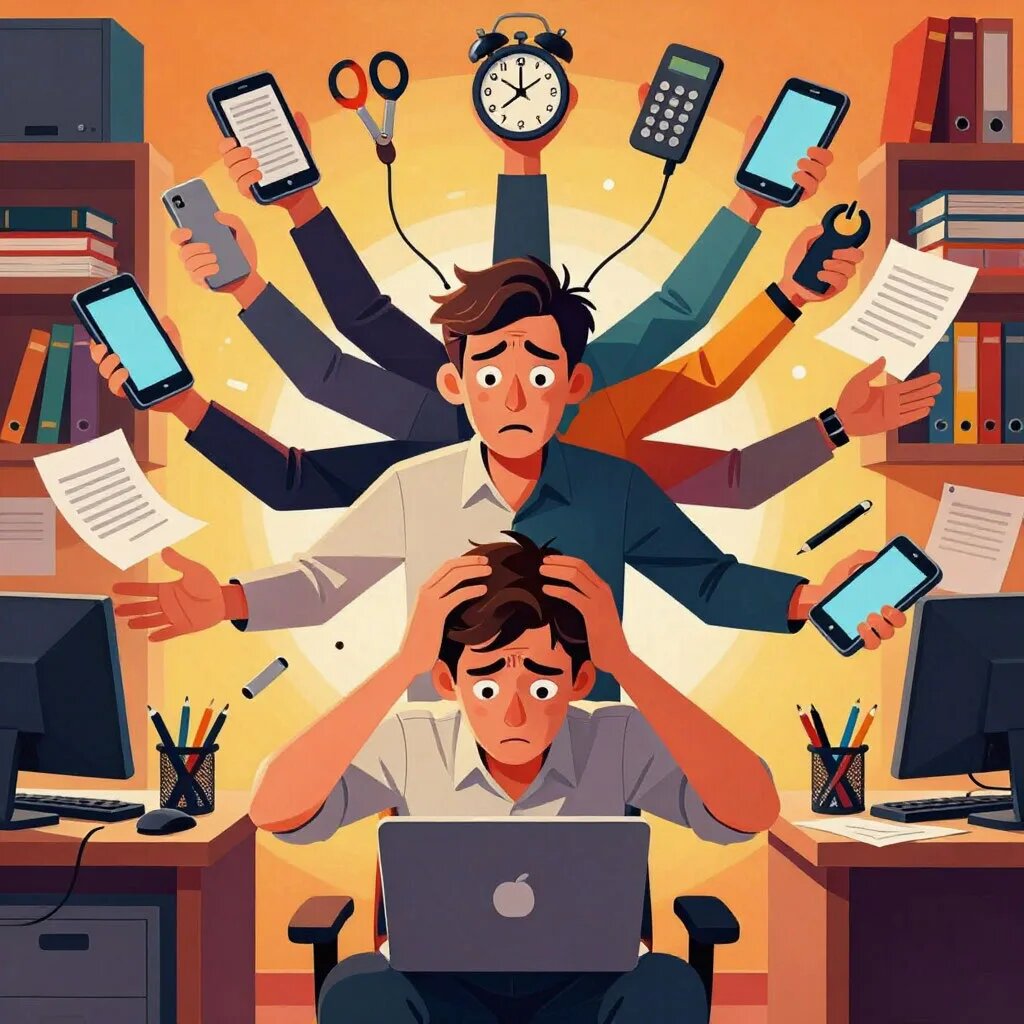 Совет дня Делай одно дело за раз — мультизадачность убивает фокус. В чем на самом деле заключается «мультизадачность»? Мозг не способен одновременно обрабатывать два осмысленных потока информации (например, писать отчет и слушать коллегу). На самом деле он занимается переключением контекста: вы быстро перескакиваете с задачи А на задачу Б, тратя энергию на «торможение» предыдущего процесса и «разгон» нового. Почему мультизадачность убивает фокус? 1. Иллюзия продуктивности. Быстрое переключение создает ощущение бурной деятельности. Но на деле каждое переключение стоит потери времени (до 40% продуктивного времени по данным Американской психологической ассоциации) и глубины погружения. 2. Падение качества. Фокус — это не прожектор, который можно мгновенно направить куда угодно. Это линза, требующая настройки. При переключениях вы решаете задачи поверхностно, на уровне «галочки», упуская нюансы и возможные ошибки. 3. Когнитивное истощение. Каждое переключение — микростресс для мозга. За де