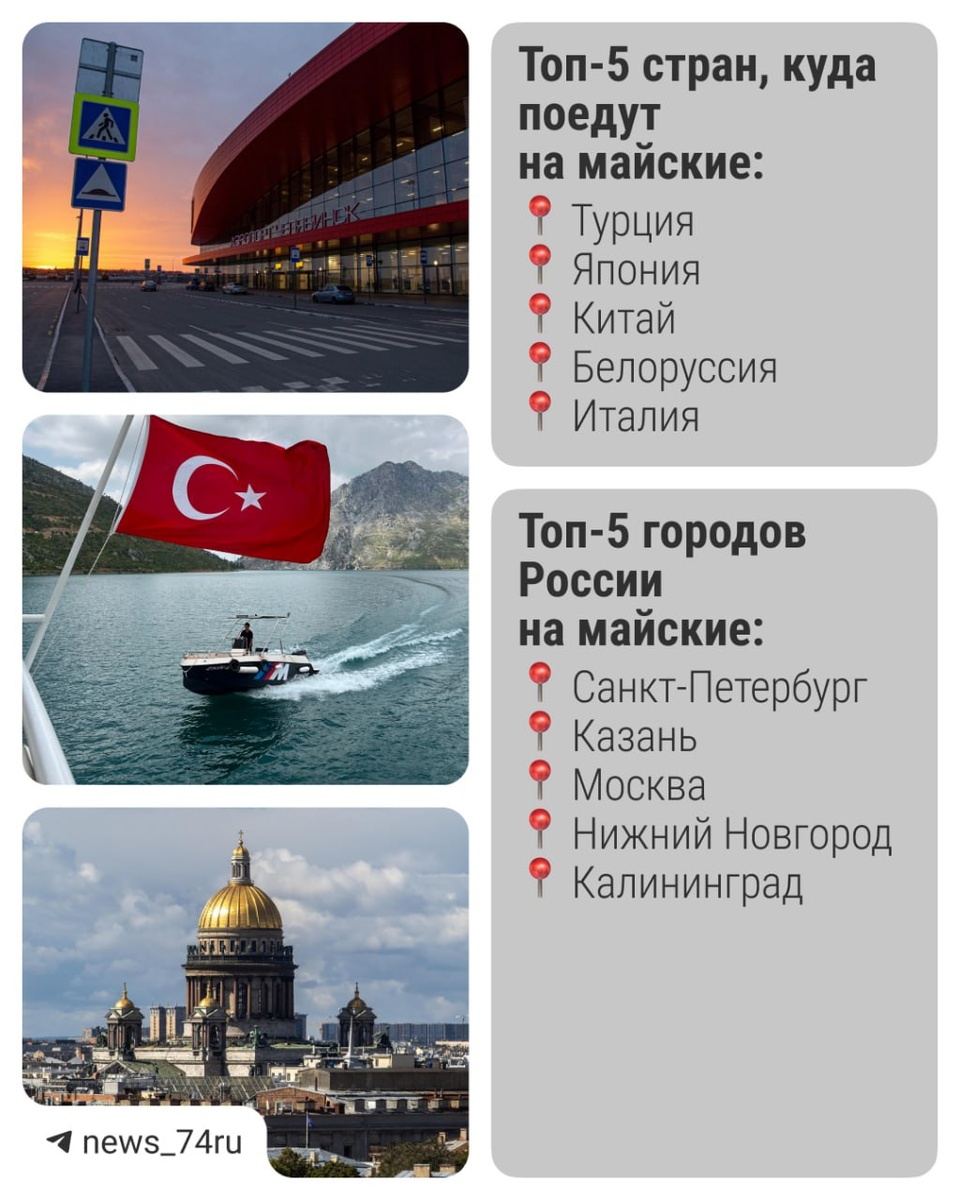 С 1 по 11 мая 64% бронирований отелей приходится на Россию, остальные бронируют поездки в другие страны. Причем в этом году, несмотря на короткие праздники, отдыхать планируют чуть дольше, чем в 2025-м. Топ стран и внутренних направлений — в карточке ⬆️ За границу россияне едут в среднем на 3,3 дня. А в поездки внутри России — на 2,2 дня, сообщили в сервисе OneTwoTrip на основе собственной статистики. 🟥 А что летом? В Минэкономразвития ожидают более 48 миллионов туристических поездок. Причем у путешественников — спрос на горы. Лидеры среди регионов — Крым, Северная Осетия и Карачаево-Черкесия. Никуда и без черноморских курортов, спрос на которые может повысится после открытия аэропортов в Краснодаре и Геленджике. 🤩 — с тех, кого все это не волнует и давно куплены билеты на дачу на все майские