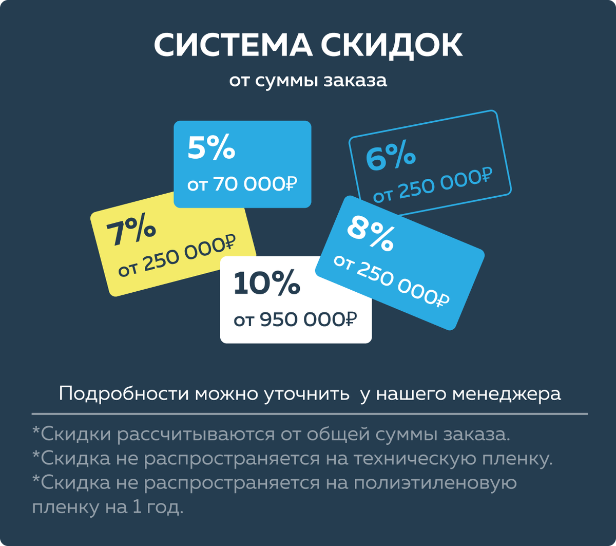 — скидка не действует на полиэтиленовую плёнку сроком службы 1 год.