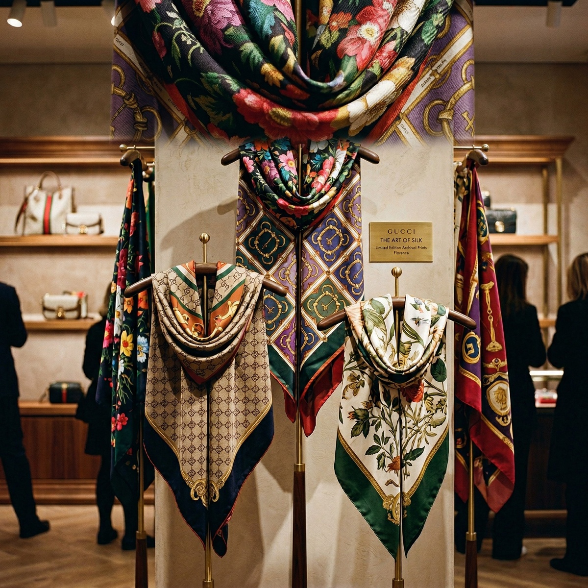 Gucci снова напоминает: шёлковый платок — это не «бабушкин аксессуар», а мини-арт-объект