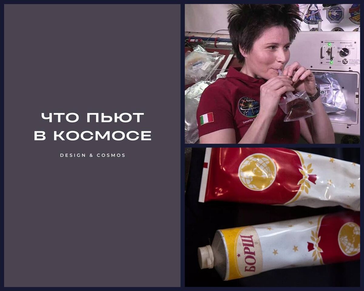 На МКС, конечно, нет привычного стакана сока. ⭐️ Все напитки, кроме воды, доставляют на орбиту в виде порошка. Перед употреблением космонавт заливает в пакет воду из резервуара, размешивает и высасывает через трубочку. Вкус и витамины сохраняются, а риск, что жидкость улетит и повредит аппаратуру, минимален. ✨ Но все ли так обыденно? Точно нет) Советским космонавтам давали коньяк 5–7 граммов вечером для снятия стресса. Прятали в тюбик с надписью «кофе». Потом алкоголь официально запретили, но увлекательные истории остались. ✨ Алексей Леонов во время миссии «Союз — Аполлон» наклеил на тюбики с борщом этикетки советской водки и предложил американцам выпить за встречу. Те отказались из-за камер, Леонов отключил их и показал, что внутри на самом деле борщ. Чай на орбите вообще целый ритуал. Для советских космонавтов создали специальный купаж из чёрного индийского и зелёного самаркандского чая. Заваривают прямо в пакете: наливают горячую воду, ждут, открывают клапан. У американцев есть