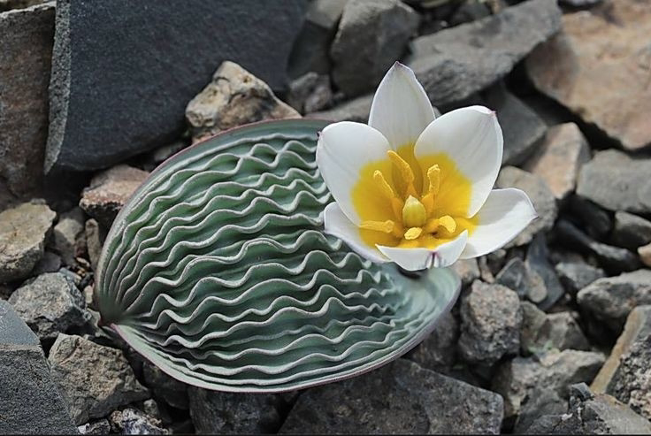 Его можно найти среди камней на осыпях, но главная тайна тюльпана скрыта в необычной морфологии, которая выделяет его среди сотен других видов. Это уникальные гофрированные листья со множеством складок-канавок, и это не просто