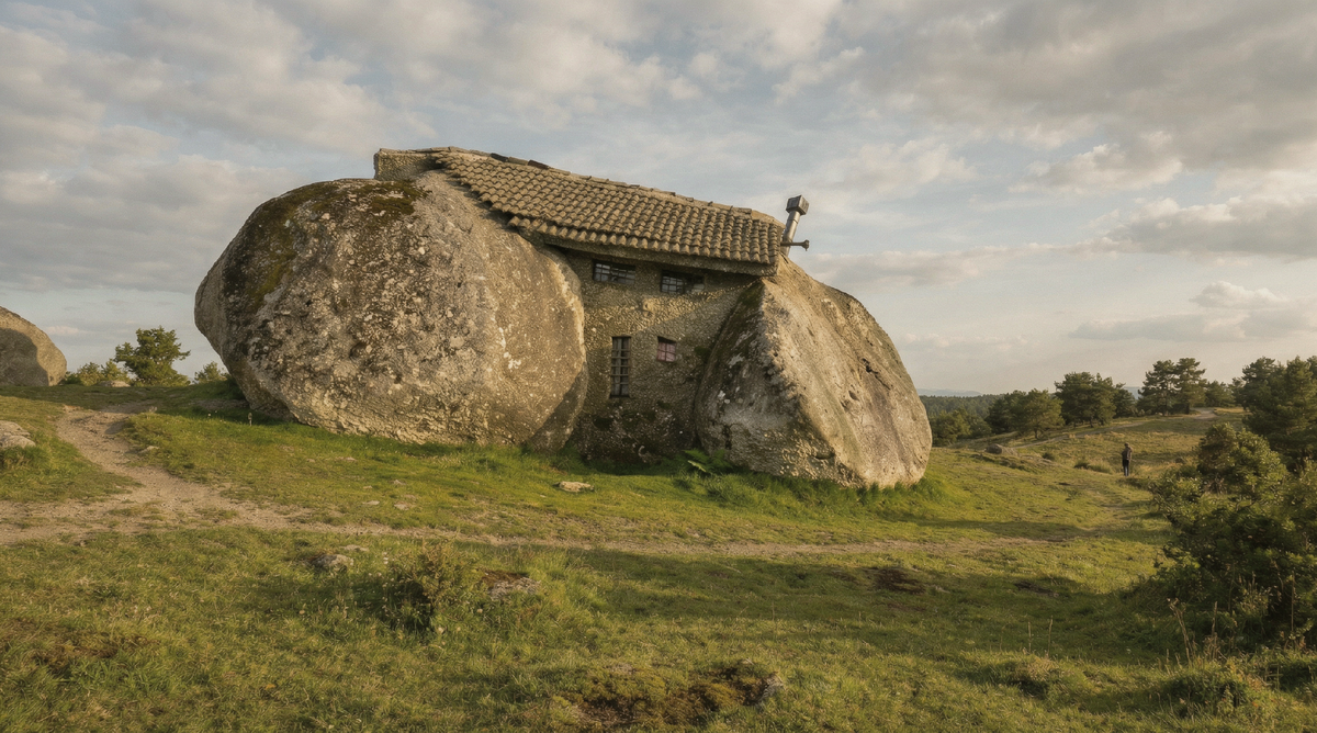 Первый раз я увидел эту фотографию в интернете и сразу подумал: ну, явно нейросеть нарисовала. Дом, сложенный из четырёх огромных валунов. Прямо в горах. Но нет. Это реальное место. Португалия. И внутри — камин, деревянные стены, спальня. Так началось моё знакомство с домами, которые ломают представление о том, где вообще может жить человек. Когда подходишь ближе, кажется, что валуны вот-вот раздавят всё, что между ними. Но нет. Они стоят так уже очень давно. И служат одновременно стенами и фундаментом. Внутри тихо. Пахнет деревом. Горит камин. Снаружи — дикая природа, горы, тишина. Это не отель и не арт-объект. Это просто дом. В котором живут. И я поймал себя на мысли: а ведь такие дома строили задолго до бетона и кирпича. Может, мы просто забыли, как это делается? Совсем другая история — в Азербайджане. Там я узнал про дом, вырубленный в горе. Четыре этажа. Первый — для хозяйства. Второй — для семьи. Третий — для гостей. Четвёртый — склад. Этому дому 200–300 лет. И это не музей. Это