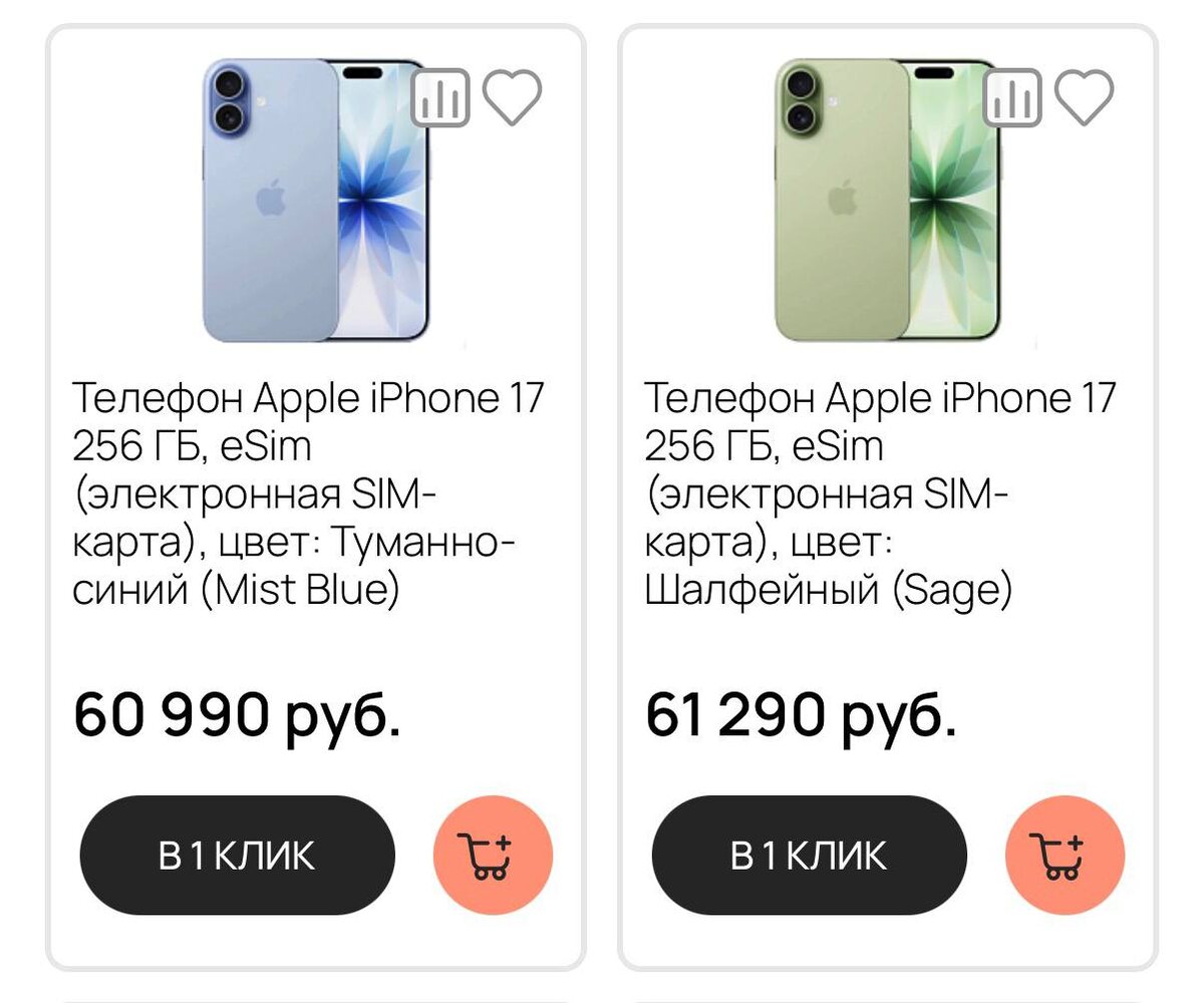 🔴 iPhone 17 подешевел в России до 61 тысячи рублей — на старте за него просили около 110–120 тысяч