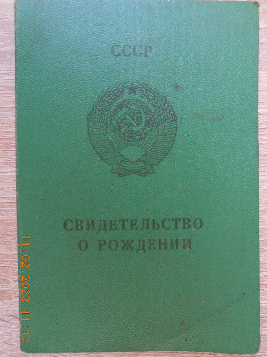 Запись: Фото ответа прокуратуры о неверном месте рождения в паспорте: https://dzen.ru/a/adtMfX0JDDjEoigN Есть действующее в форме зеленой книжечки СВИДЕТЕЛЬСТВО О РОЖДЕНИИ на Гражданина Комаринский Антон Михайлович, родился 20 августа 1985 года, Место рождения: город Таганрог область Ростовская РСФСР СССР. О чем в книги регистрации актов о рождении 1985 года августа месяца 24 числа произведена запись за № 1658. РОДИТЕЛИ: Отец Комаринский Михаил Михайлович, Мать Комаринская Наталья Владимировна, по национальности Русские. Место регистрации БЮРО ЗАГС Октябрьского района г. Таганрога. Дата выдачи настоящего свидетельства 24 августа 1985 г. Y-AH 334344. Свидетельство за росписью Заведующий отделом (бюро) записи актов о рождении. Фотографию свидетельства прилагаю следующее. А у Вас есть действующее свидетельство СССР? Приложение: Мои записи: https://dzen.ru/a/aWztCMz1OHIA3x2d © 16 день месяца Апреля 2026 г. Чел. Антон М.К.