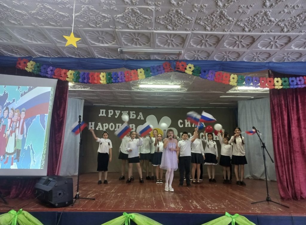 В Год единства народов России школа №1 сл. Большая Мартыновка доказала: дружба и взаимное уважение — это не просто слова, а живая, творческая сила. Здесь с большим размахом прошел смотр художественной самодеятельности «Многоцветие талантов», который превратился в настоящий фестиваль культур. С самого утра в школе царила атмосфера праздника. Сцена стала мостом между регионами и традициями огромной страны. Юные артисты с гордостью и трепетом представляли творческие номера, каждый из которых был посвящен уникальному наследию одного из народов России. В зале звучали проникновенные стихи и песни о Родине, наполненные любовью к ее бескрайним просторам и богатой истории. Но особенно зрителей покорила хореография. Сцена буквально оживала, сменяя друг друга: Каждый танец, каждая мелодия были не просто выступлением, а рассказом — историей о гостеприимстве, чести, радости и красоте, сплетаясь в единое, красочное полотно российской культуры. Кульминацией праздника стало создание символа, который л