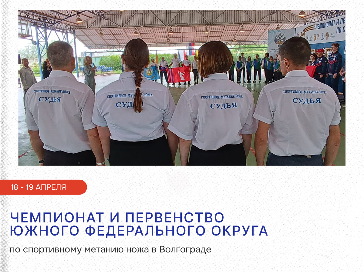 18 и 19 апреля в Волгограде пройдут Чемпионат и Первенство Южного федерального округа по спортивному метанию ножа. Место проведения:
