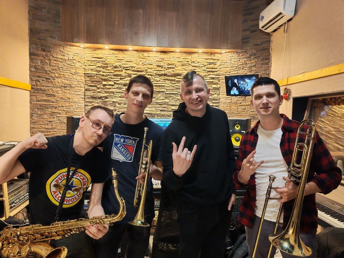 Только что вот эти замечательные джентльмены записали духовые к одной из наших новых песен, тем самым поставив точку в записи альбома