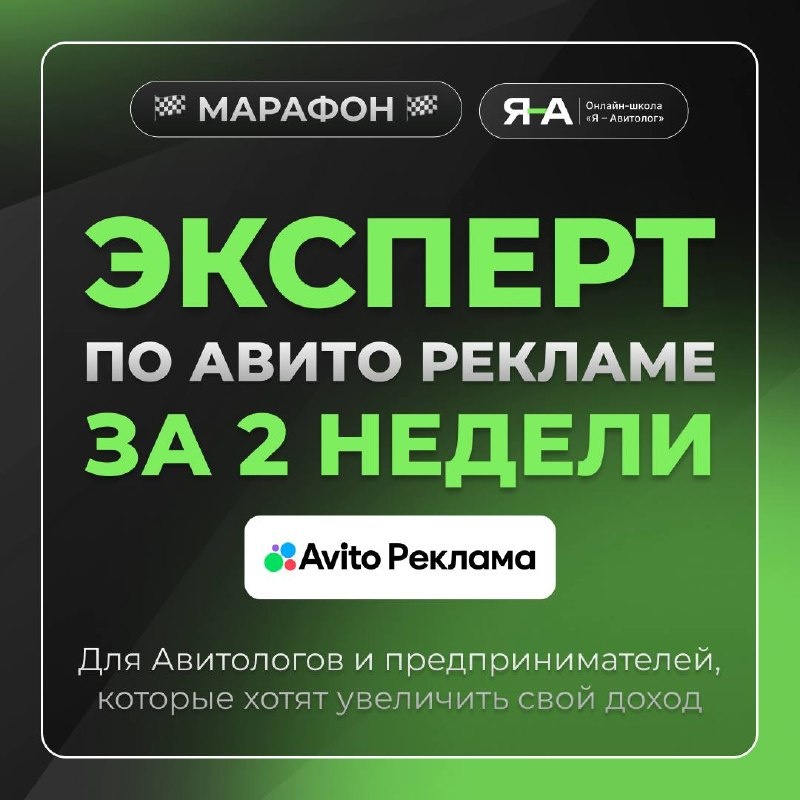 » Мы видим, что большое количество специалистов по рекламе и предпринимателей все ещё не используют самый трендовый рекламный инструмент 2026 года. Причины понятны. Это что-то новое. Нужны кейсы, рабочие связки и т.д. Но проблема в том, что когда кейсов будет много, вы не сможете получать клики по 2 рубля и сделки с чеком 200к+ всего за 4000 рублей. А сейчас это еще можно и нужно делать) Самый простой и верный способ - просто купить чужой опыт и уверенно запускаться без рисков слить бюджет. Именно поэтому мы решили запустить 2-недельный марафон, на котором вы сможете запустить свои первые рекламные кампании вместе с нами. Программа: - Обзор интерфейса кабинета - Авито Эдс - Авито Реклама для дополнительного продвижения объявлений и профиля - Создание посадочной страницы на Tilda за 1 день - Авито Реклама для продвижения сторонних сайтов - Быстрое создание ботов для Telegram / Max на платформе Bothelp -Авито Реклама для набора подписчиков в социальные сети(TG, VK, MAX) - Как Авитол