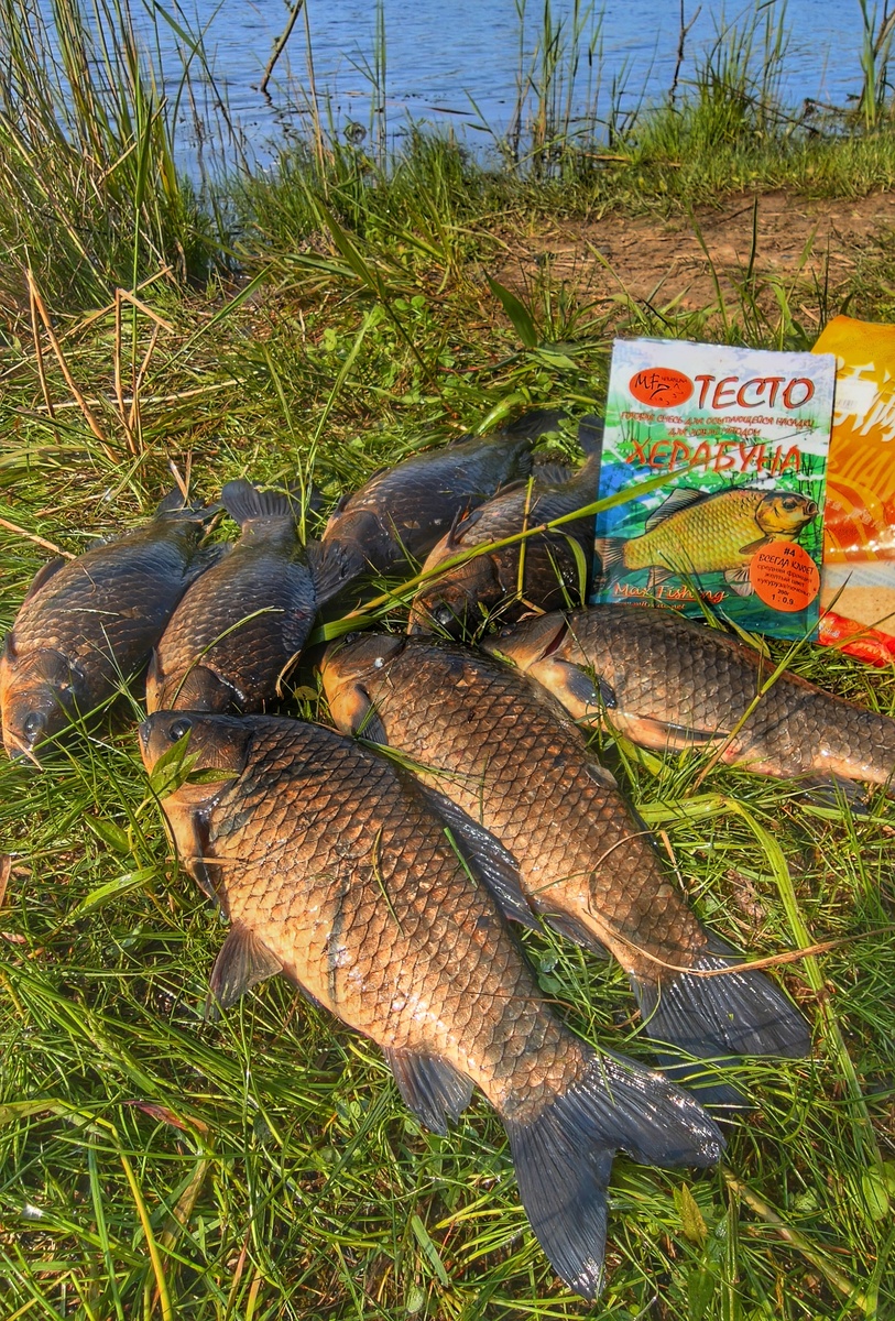 Привет, друзья! Этот карасевый сезон начался рано. Уже половили всяких разных карасиков до 500г, сбили охотку и решили проверить большой прудик, где в прошлом сезоне успешно ловили крупного карася. Подготовил "корейские" оснастки на новых поплавках серий К2 и К3. Как раз делал их под такие условия - поплавки довольно длинные и для постоянного ветра на этом водоеме (да и вообще в нашем регионе с ветром беда) длина поплавка уменьшает снос оснастки. Оснастил их новыми дневными бобышками пластиковыми желтыми, на черных "мамах". Ну и теста замешал, тоже их новинок. Для большого карася замешал "Кракена" - это тесто MF #12 с ароматикой подсолнечного жмыха и семечек. И как более нежный вариант, но с сильной аромой, сделал смесь из "Отрубей" №3 и нового теста Ши-Фу №33 "Чеснок+++". Все получилось замечательно - первое довольно жесткое и сильно разбухает на дне. Второе мягонькое и отлично пылит на опускании и отдает ароматику. Но 2 часа вдвоем отсидели и даже пузырика на воде не появилось. Лишь