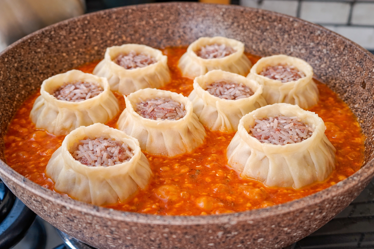 Подаём горячим, щедро поливая ароматным овощным соусом. Тесто получается мягким и нежным, фрикадельки — сочными, а овощи придают блюду насыщенный, домашний вкус и приятный аромат специй.