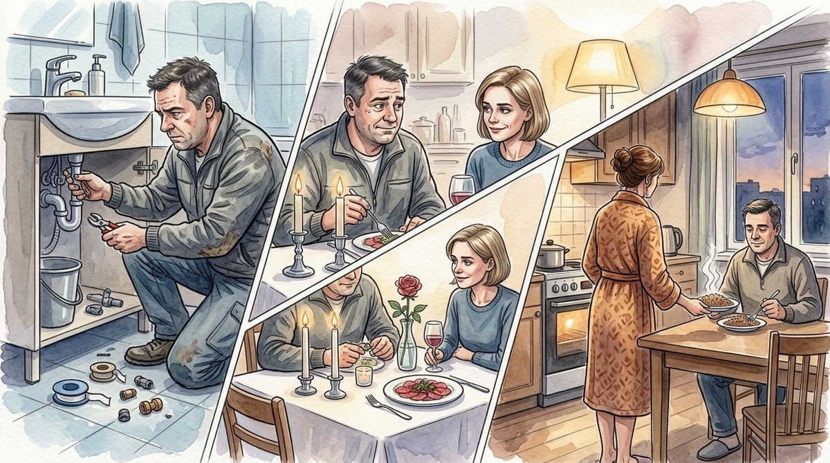 Я всё думаю про тот день. Он же поехал изменить — и не изменил. Почему? Потому что не умеет иначе, потому что везде видит сломанное и не может пройти мимо. Или потому что смеситель капал раз в секунду — и это было громче любой мысли.