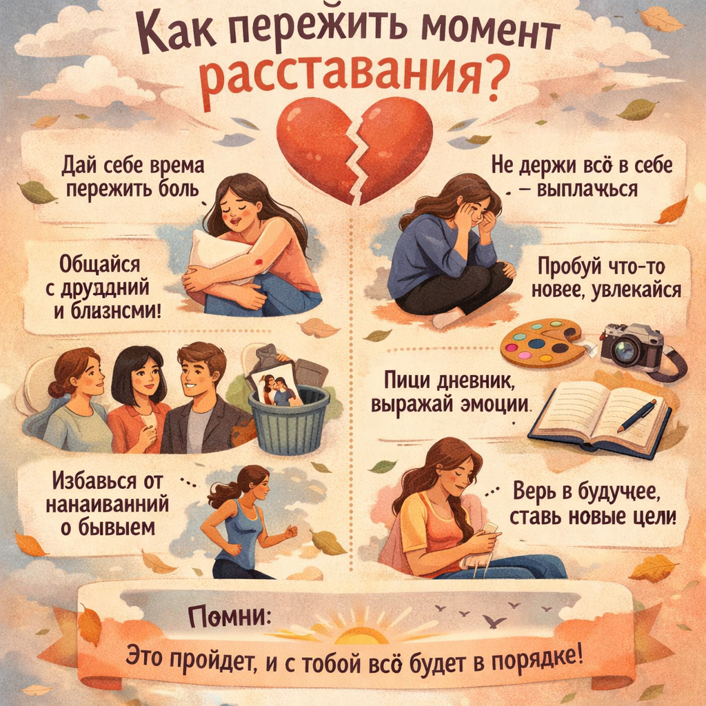 Тема: «Когда всё треснуло (расставание, развод, кризис отношений)» Когда всё треснуло, но ты ещё дышишь Она сидела на полу ванной комнаты. Одетая. Обутая. С телефоном в руке. И не могла набрать номер подруги. Потому что тогда пришлось бы произнести вслух то, что случилось. А произносить вслух «мы расстались» — значило сделать это реальным. Она смотрела на кафельную плитку. На трещину в левом нижнем углу. Ей всегда казалось, что эта трещина похожа на молнию. И сейчас, в полумраке, молния будто ожила. Насмехалась. — Ну давай, — сказала она вслух. — Ударь. Телефон молчал. Подруга не звонила. Мир не рухнул. Просто закончились отношения. А она — сидит на холодном полу и боится встать. Потому что если встать — надо будет идти дальше. А куда — непонятно. Вот так и выглядит момент расставания. Не как в кино: с дождём, битой посудой и душераздирающим криком под музыку Adele. А как тихий ужас посреди обычного вечера. Когда ты понимаешь: поезд ушёл. И ты остался на платформе. Один. --- Часть пер
