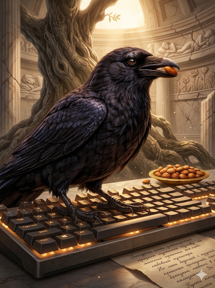 Корв: Кха! «Голос разума». Смирись, Алена: я просто единственный, кто здесь по-настоящему видит всю картину. Пока ты пишешь легенды, я в них живу. Иди уже, работай, а я прослежу, чтобы в тексте было поменьше пафоса и побольше правды.