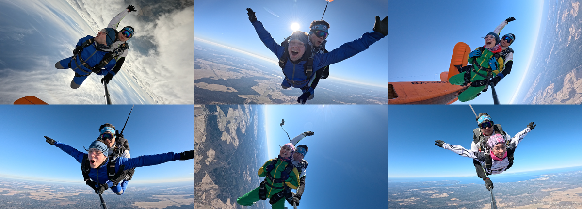 Друзья, каюсь! На прошлой неделе ушел в «радиомолчание» и не выложил отчет. Исправляюсь: сезон набирает обороты, и теперь буду подводить итоги по понедельникам — как раз когда адреналин выходных немного утихает. За эти две недели — плюс 15 счастливых людей в моей копилке. Каждый прыжок с 2700 метров — это отдельная история, но пара встреч запомнились особенно сильно. Зубами за шапку и «жмурки» в свободном падении На фото (снизу по центру) — моя «рецидивистка»! Прыгали с ней уже второй раз. Она напомнила эпичную историю из своего первого (зимнего) прыжка: тогда у неё едва не улетела шапка. Чтобы пассажирка не замерзла при снижении, мне пришлось держать её шапку зубами под конец свободного падения. Сервис уровня «Люкс», не иначе! 🦷🧢 Во второй раз судьба решила отыграться на мне: уже я сам забыл взять очки для прыжка... Итог: всё свободное падение пришлось усиленно жмуриться. Не повторяйте это дома (и в небе), но чего не сделаешь ради крутого кадра и эмоций!(ролик с улетающей шапкой мож