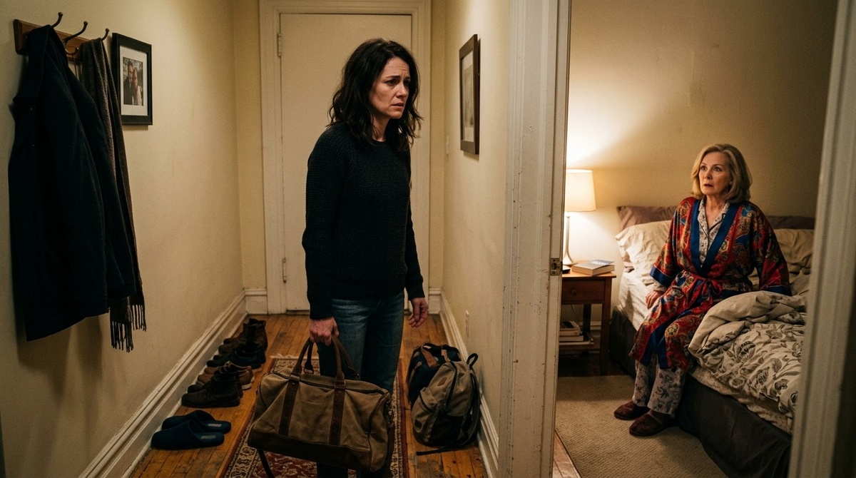 Ольга Валентиновна появилась в дверях кухни, придерживая ворот ночной рубашки. На щеке остался след от подушки. Она прищурилась, увидела нас с сумками и сказала без тени смущения: