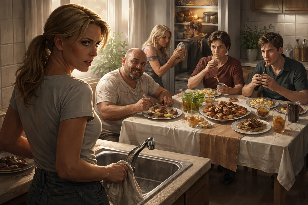 Родственники явились в пять вечера. Ирина Петровна зашла с видом королевы, идущей на эшафот, чтобы помиловать преступника. Катя и Виталик зашли следом, высокомерно задрав носы. Но когда они увидели стол, их спесь мгновенно испарилась, сменившись первобытным блеском в глазах.