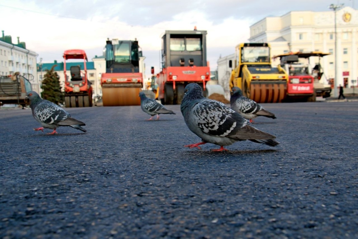 Саранск сегодня. Асфальт новый-голуби не ходили.