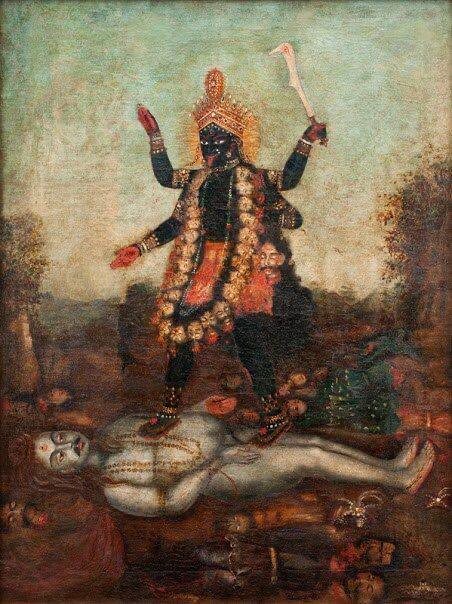 ТЕНЬ, КОТОРАЯ ДАРУЕТ СВОБОДУ В продолжении я хочу поговорить о той энергии, которая это сделала возможным — о гневе. В йоге гнев не осуждается как грех. Это — энергия трансформации. Это — ваша тень. ЧТО ТАКОЕ ТЕНЬ В ЙОГЕ Юнг говорил, что тень — это всё, что мы вытеснили, всё, что считаем "недостойным" в себе. В йоговской философии это называют Раджас— активная, огненная, разрушительная энергия. Мы учимся её подавлять с детства. Особенно — женщины. "Девочки не должны злиться", "хорошие женщины молчат", "гнев — это некрасиво". Но когда вы систематически подавляете гнев, он не исчезает. Он накапливается, оседает в теле — в горле, в животе, в груди. Становится депрессией, страхом, и даже болезнью. БОГИНИ ГНЕВА Йога знает немало богинь, которые воплощают священный гнев. И это не ужасные демоницы — это защитницы. Кали— самая известная. Её изображают танцующей по телам демонов, языком вываливающимся, украшениями из черепов. Это выглядит страшно, но это — образ полной свободы. Кали
