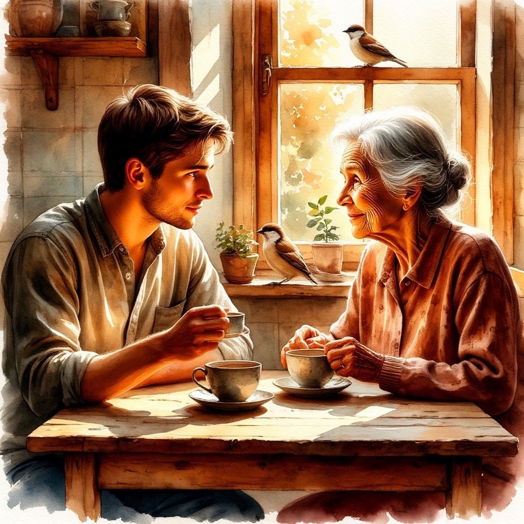 - Ты уже взрослый человек, у тебя работа, семья, дела. Зачем ты так строго каждую субботу к ней ездишь? Она же не болеет, не лежит. Могла бы и сама прожить неделю без тебя. Сын задумался и сказал: - Когда я был маленький, мама работала в две смены. Я её почти не видел. А каждое воскресенье она садилась со мной за стол, кормила меня завтраком и говорила: "Сынок, давай просто посидим вместе. Ничего не надо делать. Просто будь рядом". Я тогда злился, хотел бежать играть, а она просила: "Ещё пять минут. Потом ты вырастешь, и у тебя не будет на меня времени". Он помолчал и добавил: - Теперь я понимаю, что эти чаепития были не для неё. Они