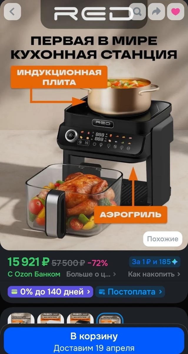 Сейчас все кому не лень рекламируют аэрогриль Demiand с WiFi, но как по мне гораздо круче Red с индукционной плитой