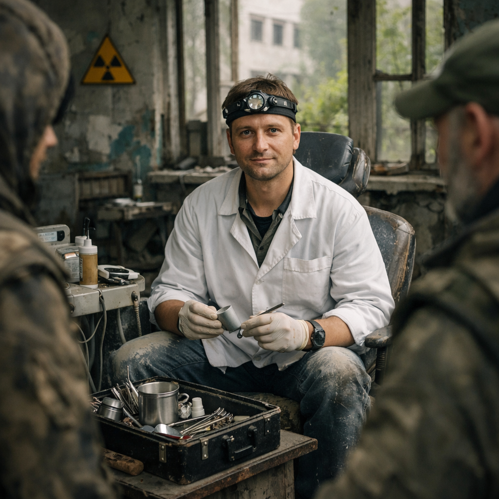 Алексей никогда не думал, что вернется в эти края. Зона, что окутала его детство страшным, невидимым коконом, тогда казалась ему просто огромной, заброшенной территорией, где запрещено играть. А потом – эвакуация, суета, чужой город, и Припять – образ, выцветший, но прочно засевший в памяти. Дом, разбитые окна, запах тополиного пуха… Годы шли. Алексей вырос, выучился, стал врачом. Стоматологом. Впрочем, в Зону он шел не лечить. Давно уже не та Зона это была, а скорее, забытое богом место, где жизнь теплилась в своем, особенном ритме. Он пришел сюда, ведомый ностальгией, чтобы увидеть родные стены, побродить по пустынным улицам, ощутить ту самую, давнюю атмосферу. У костра, под треск поленьев и ворох звезд, Алексей, уставший от долгих переходов, разговорился со сталкерами. Просто так, по-свойски. А потом, сам не зная как, проговорился, что знает толк в зубах. Не успел он и глазом моргнуть, как вокруг него сгрудились мрачные, обветренные лица. "Зубы, братан! Зубы сыплются, как осенняя ли