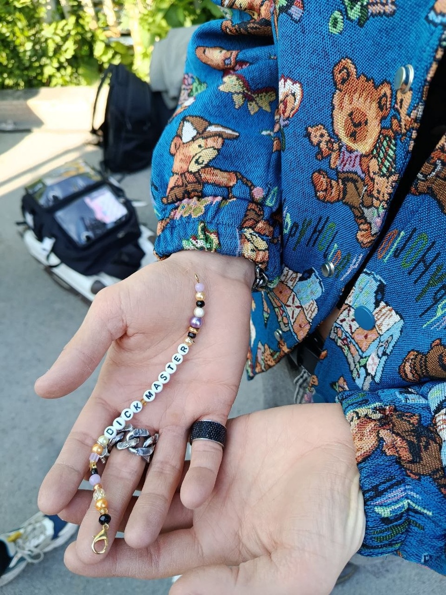 В прошлом году в Тюмени мне подарили браслет 'dick master'. Он порвался, так что придется ехать за новым :3