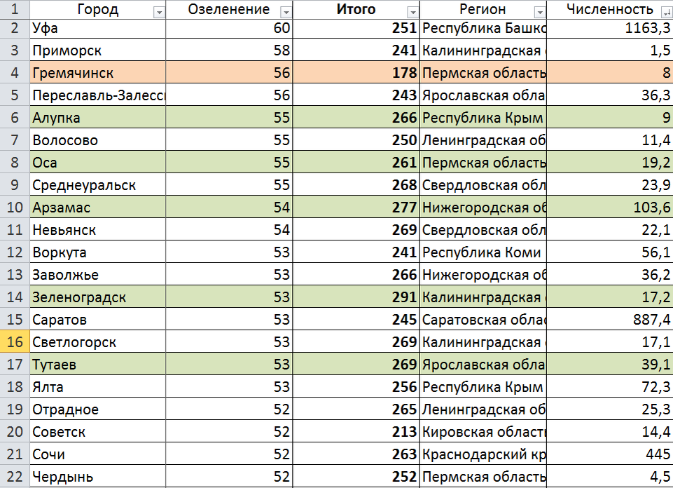 Там вообще три города из Пермского края. Такое ощущение, что мэры (главы администраций) просто как-то догадались, как нужно отчитаться по данной категории. Ну объективно по климатическим условиям регионы Сибири и Урала не могут быть в числе лидеров. Не "наша" это категория. Можно прилагать массу усилий, чтобы сделать город зеленым, но соперничать с регионами с благоприятным климатом - это просто невозможно.