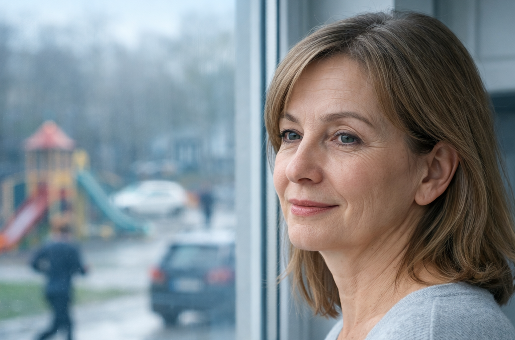 Она встала и подошла к окну, за которым кипела жизнь: спешили люди, ехали машины, кричали дети на площадке. Пейзаж был как из красивой, но чужой открытки.