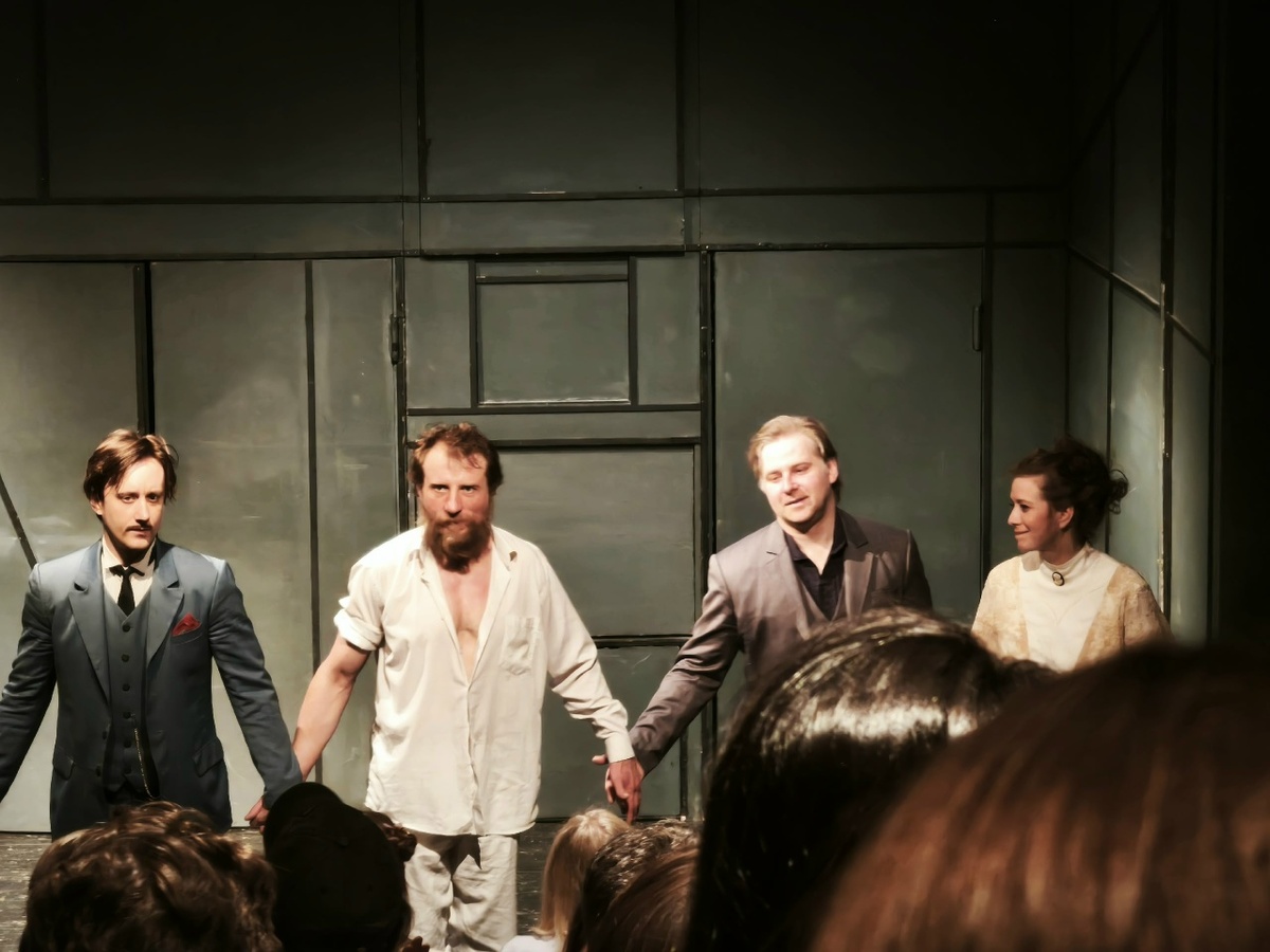 Смотрела его довольно давно. И вот после недавних посещений "Иосифа и его братьев" в Вахтангова и "Божественной комедии" у фоменок решила пересмотреть. Ну, и да - общее у всех трех постановок - режиссер Юрий Титов.Ту он еще и играет одну из ролей. Забавно, в какие-то моменты напомигал Андрея Миронова. Я ж еще почти на последнем ряду была... Очаровательна история с Генрихом. Спойлер - это она. Как Жорж Санд.. Когда ее где-то ждет другой, она рядом с Глебовым.. Красивая история, и даже в чем-то забавная.. до поры до времени... То же распитие спиртных напитков со случайным собутыльником (колоритнейший Владимир Свирский ). Классный ход при разговоре на разных языка находить, за что выпить вместе... Да и с Дмитрием Захаровым у Свирского хорошая сцена. Генрихом прекрасная Александра Титова. Но шикарней она тут в образе официантки!! Милейшая история с каникул. Треугольник. Высокий, немного неуклюжий в своей юности главный герой. И два очаровательных создания - бойкая Соня (Серафима Огарева) и
