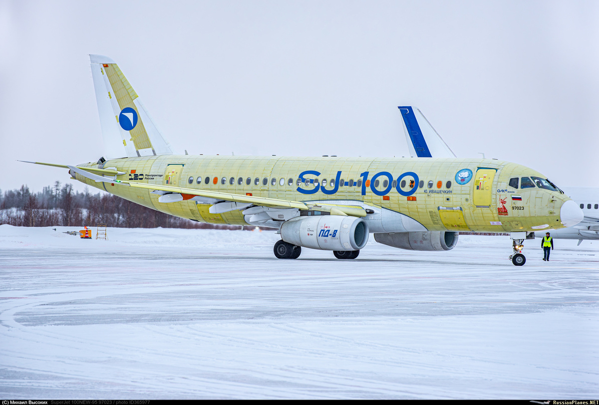 Итак, Суперджет. Сейчас имеются твёрдые контракты у 3 перевозчиков (Ред Вингс – 22 борта, Азимут – 10 бортов и Аврора – 8), Россия пока что сидит с опционом от старого контракта, там вся группа Аэрофлота решила пока что на МС-21 сосредоточиться. Итого заказов на 42 самолёта. По заявлениям МПТ в том или ином виде собираются 26 Суперджетов, из которых планируется поставить в этом году 12 штук (97024-97035), которые сейчас в высоой степени готовности (планеры полностью собраны, наполняют комплектухой). Сертификат ждут в августе. На текущий момент выполнено 180 из 230 сертификационных полётов и полностью завершены доводочные полёты. Сейчас темп в среднем 25 сертификационных полётов в месяц, обещают все вылетать за 2-3 месяца.