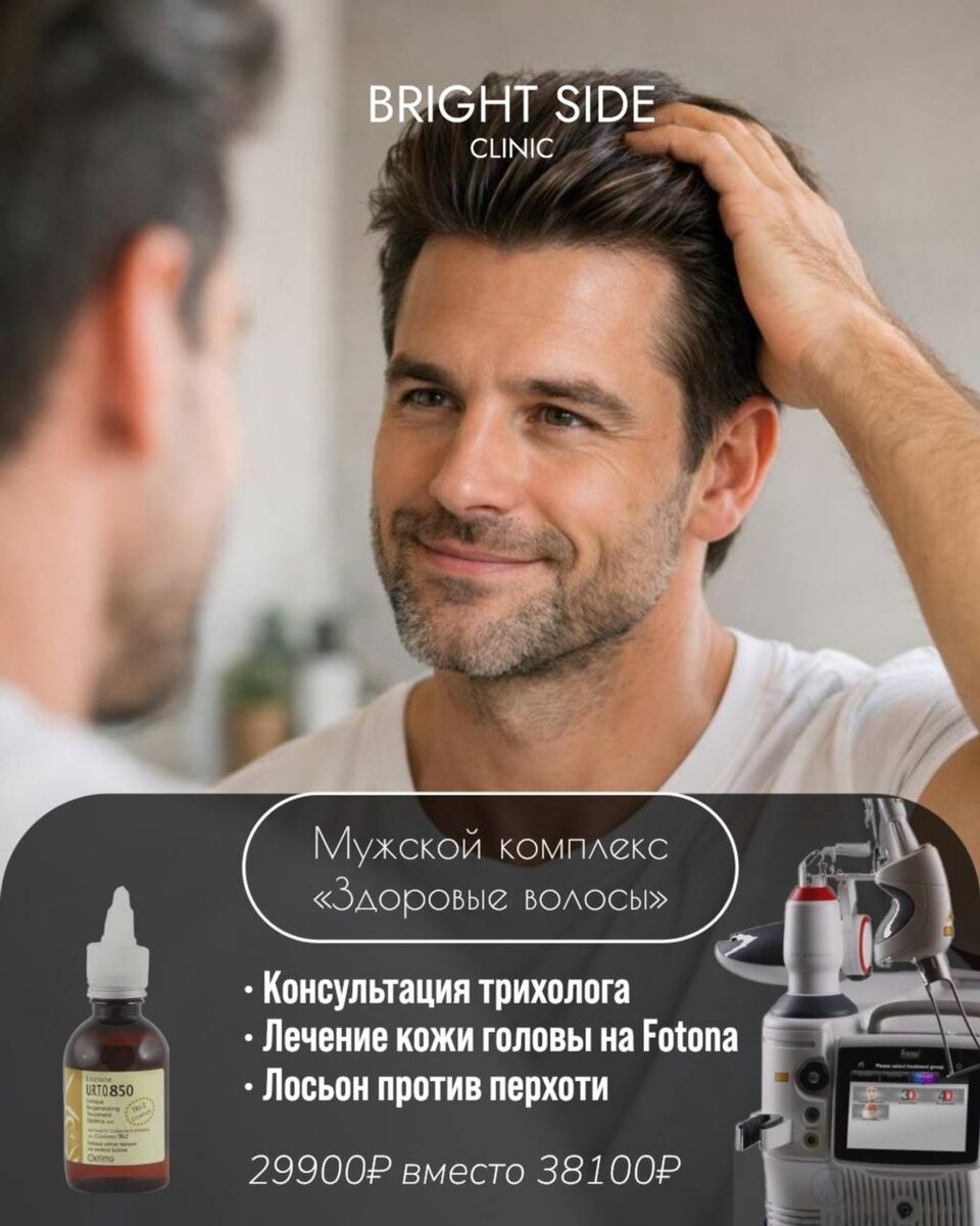 ? МЫ ПОДГОТОВИЛИ ДЛЯ ВАС 2 СПЕЦИАЛЬНЫХ ПРЕДЛОЖЕНИЯ 🎁 1️⃣ Мужской комплекс «Здоровые волосы» Консультация трихолога + лечение кожи головы на Fotona + лосьон против перхоти URTO 850 с TRI-Z Complex 29 900 ₽ вместо 38 100 ₽ Выгода — 8 200 ₽ ✅ Комплекс создан для мужчин с перхотью, зудом, жирностью, себореей и себорейным дерматитом. Fotona уменьшает воспаление и восстанавливает кожу головы, а лосьон URTO 850 помогает контролировать перхоть и предотвращает ее повторное появление 2️⃣ «Двойной удар против старения» При игольчатом RF, Векторном лифтинге, Dermapen, Fotona 4D и 5D — швейцарские растительные экзосомы Vovon стоимостью 11 000 ₽ в подарок 😍 Экзосомы усиливают эффект процедуры: кожа быстрее восстанавливается, становится более плотной, гладкой и сияющей. И главное — экзосомы Vovon есть только в Bright Side Clinic. Ни в одной другой клинике города их нет 🤫 Акции действуют до 15.05. Количество мест ограничено! 💌 Написать нам в MAX / Написать нам в Telegram 💙 Новостной к