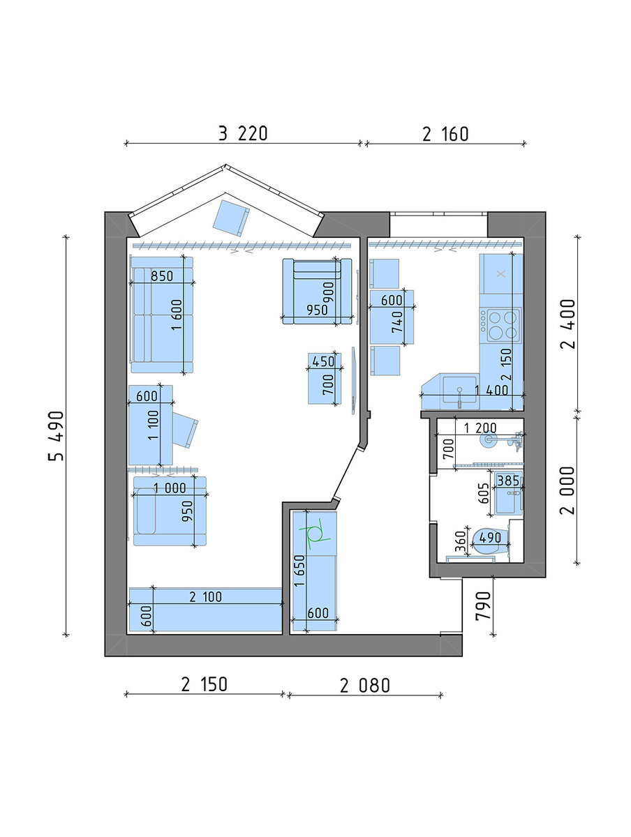 Как подготовится к разговору со строительной бригадой Первое что необходимо сделать это получить представление о том как будет располагаться мебель и в какой стилистике будет жильё! Для этого нужно в масштабе от руки или если есть возможность в специальной программе зарисовать План с мебелью указав габариты помещения и размер мебели: В идеале же создать 3D модель помещения, но сделать это без специальных навыков будет затруднительно: Решив ключевые вопросы с расстановкой мебели переходим к Плану розеток и выключателей, решаем где они будут располагаться, зарисовываем на плане, указываем размеры от углов до центра розетки или блока розеток, не забываем указать на какой высоте от пола будет розетка или выключатель если эта высота не стандартная: Данный материал адресован людям без специальной подготовки, имеется в виду что хозяин квартиры сам делает проект и чертит карандашом на бумаге, поэтому и примеры-это рисунки сделанные от руки, а рядом тот же самый рисунок но сделанный в специ