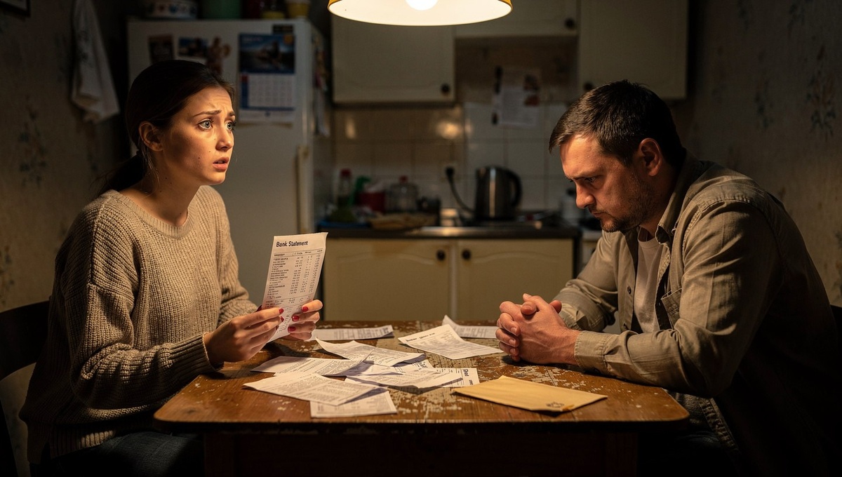 Дмитрий вошёл, стряхивая с куртки мелкий дождь. Увидел жену, сидящую за столом с разложенными бумагами. Его лицо мгновенно изменилось. Словно кто-то нажал переключатель — и беспечный весельчак превратился в провинившегося мальчишку.